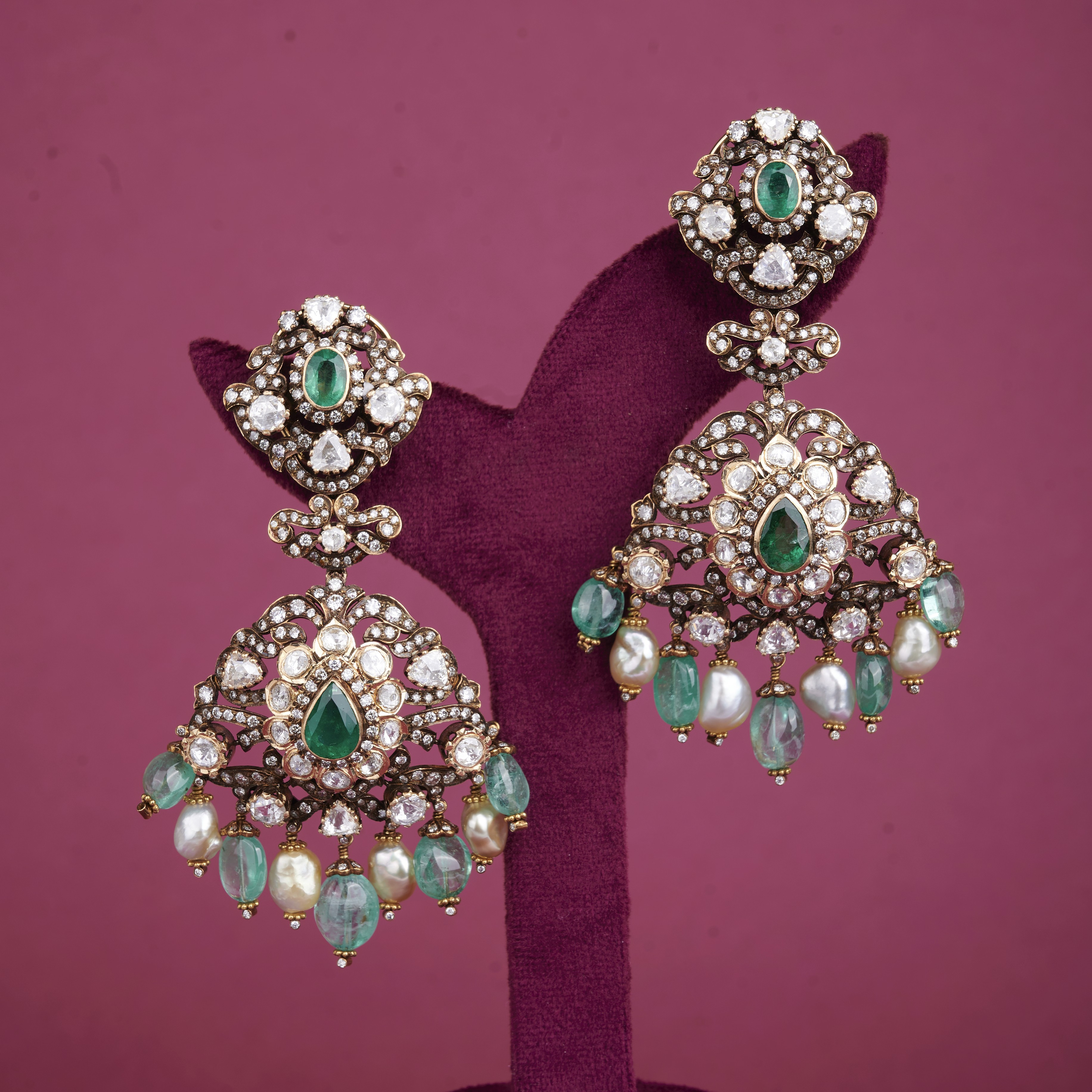 Explore sophistication with our Emerald Polki Dangling Earrings, featuring vibrant emeralds, shimmering polki, and delicate dangling pearls and stones. These earrings blend elegance and luxury, perfect for adding a touch of glamour to any occasion. Discover the exquisite craftsmanship and timeless beauty of these stunning earrings today.