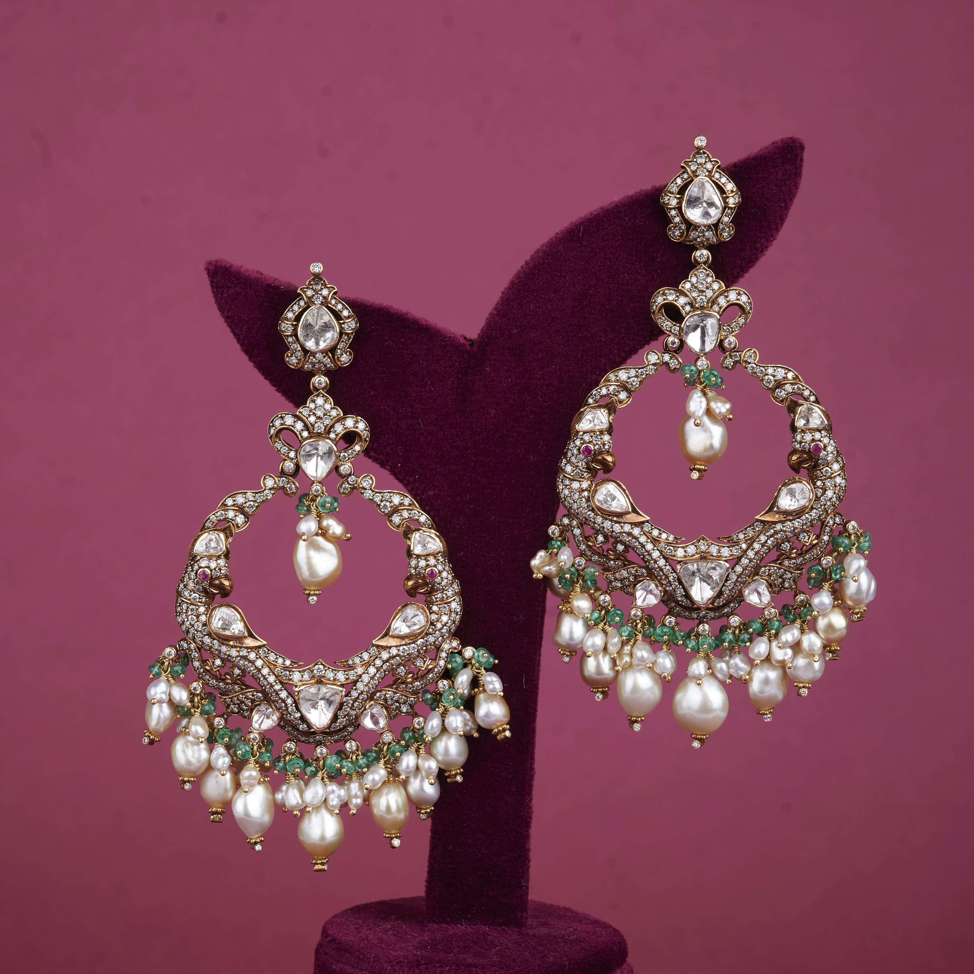 Introducing our Pearl and Diamond Danglers, showcasing exquisite designs with delicate dangling pearls and shimmering diamonds. These earrings exude elegance and luxury, perfect for adding a touch of sophistication to any ensemble. Discover the timeless beauty and craftsmanship of these captivating earrings today.
