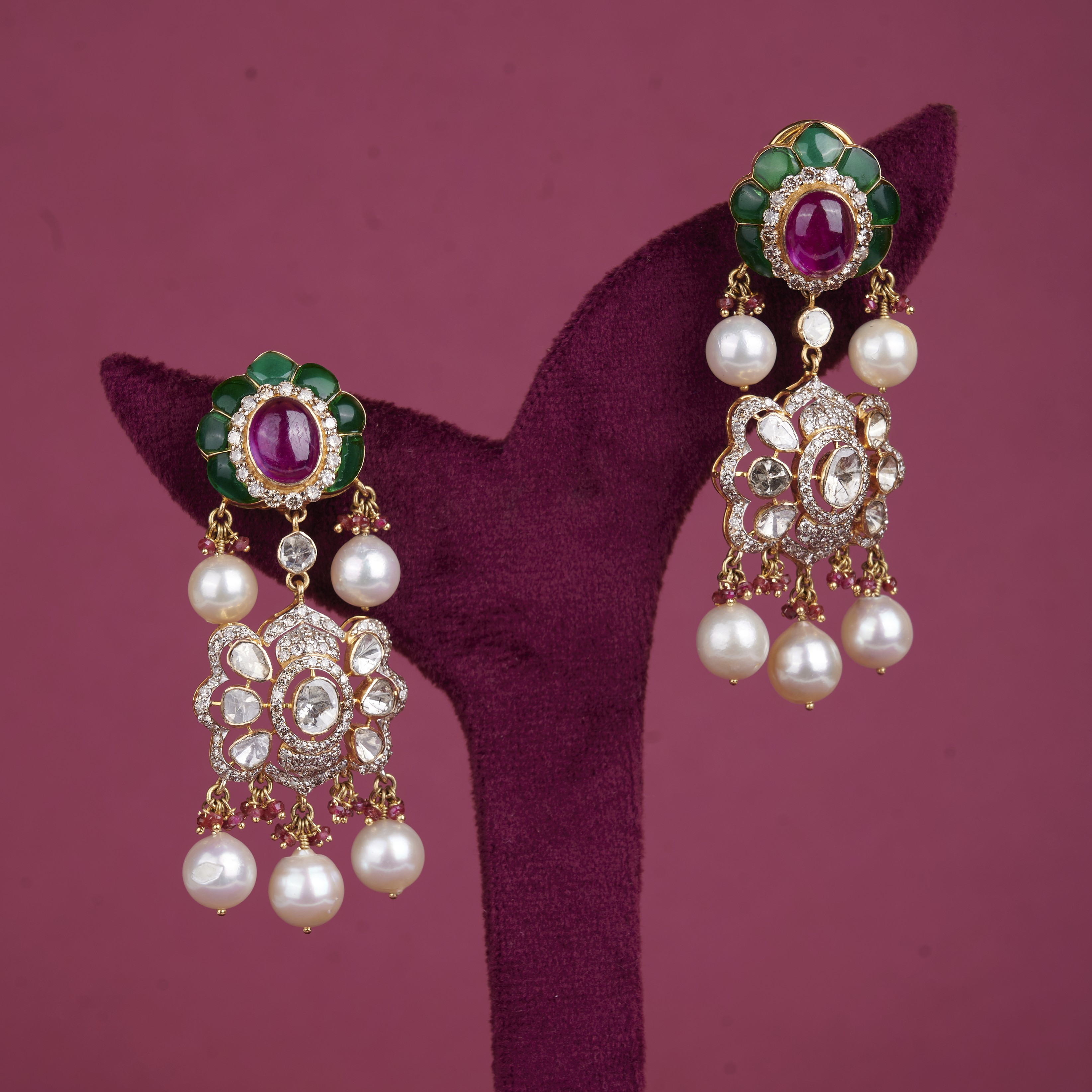 Polki Diamond Pearl Danglers