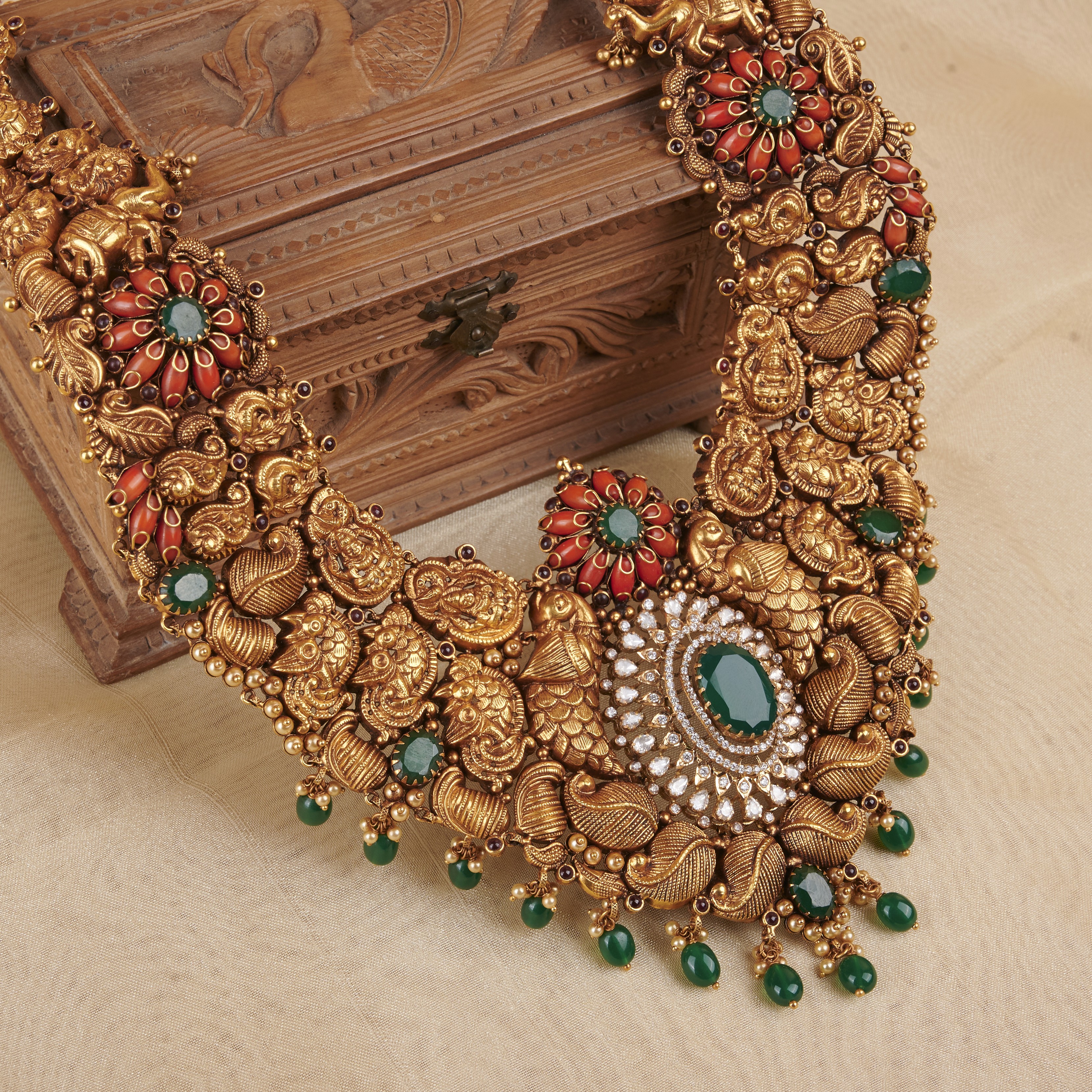 Divine Gold Temple Carving Necklace
