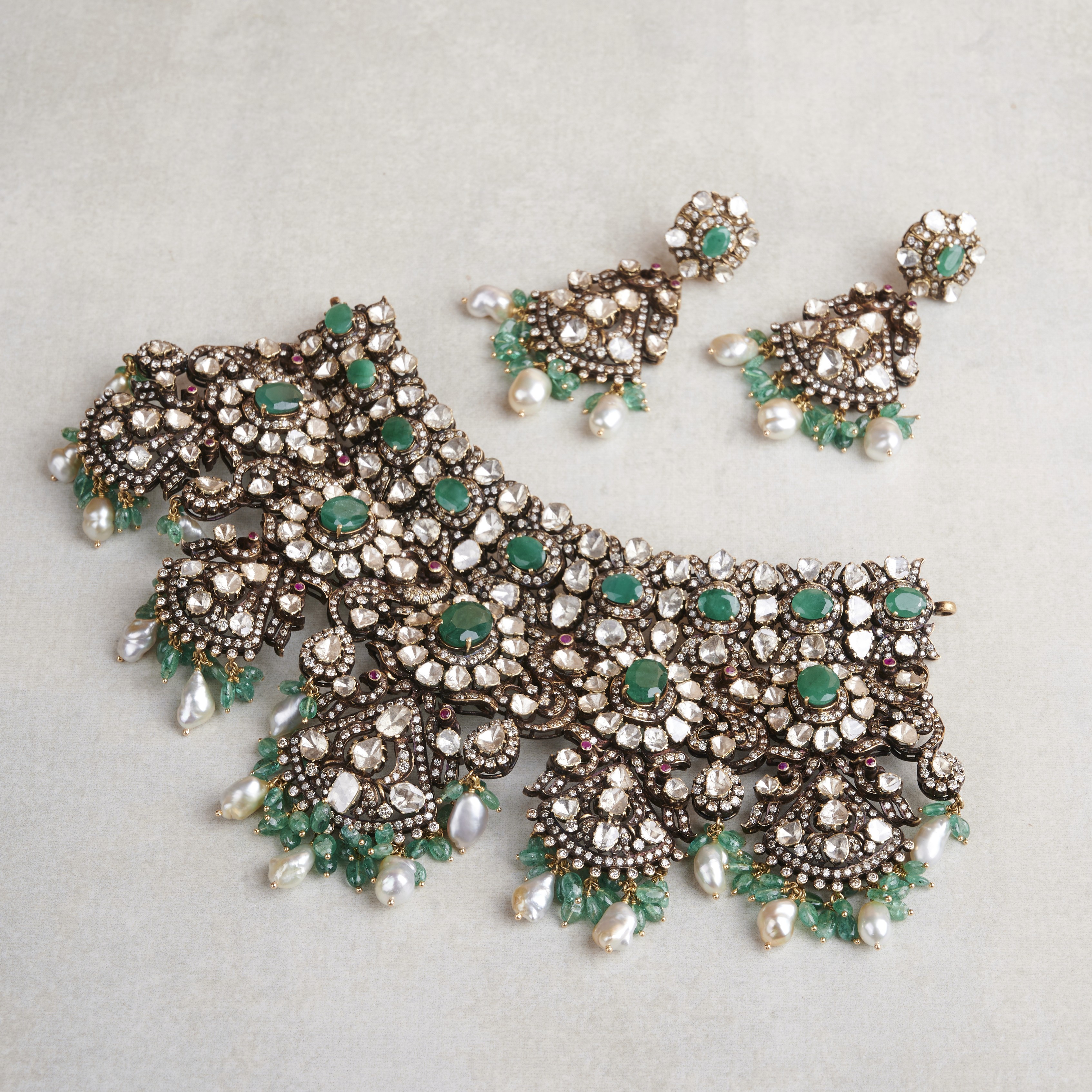 Enchanting Polki Emerald Diamond Necklace Set