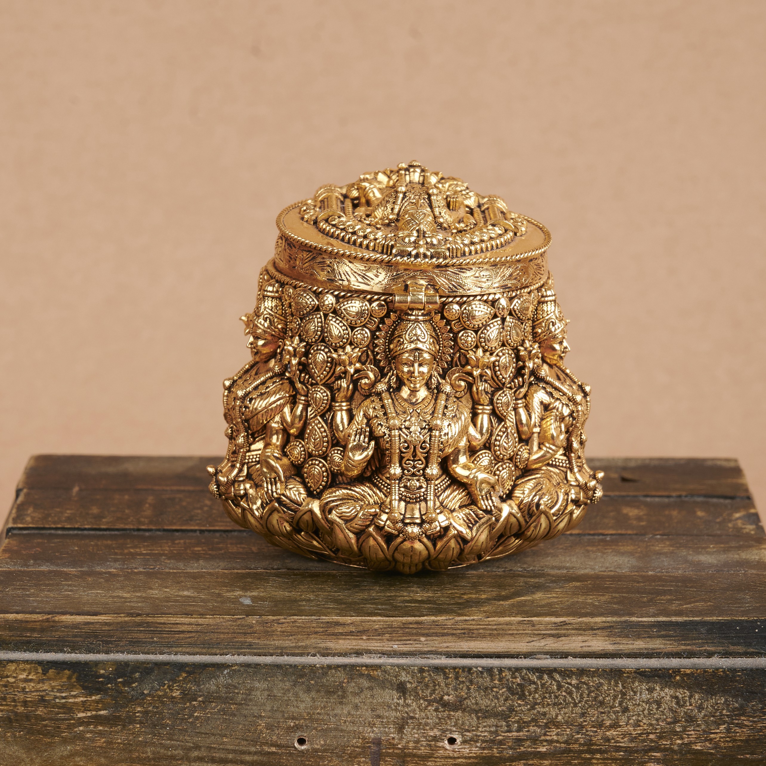 Golden Carved Sindoor Box
