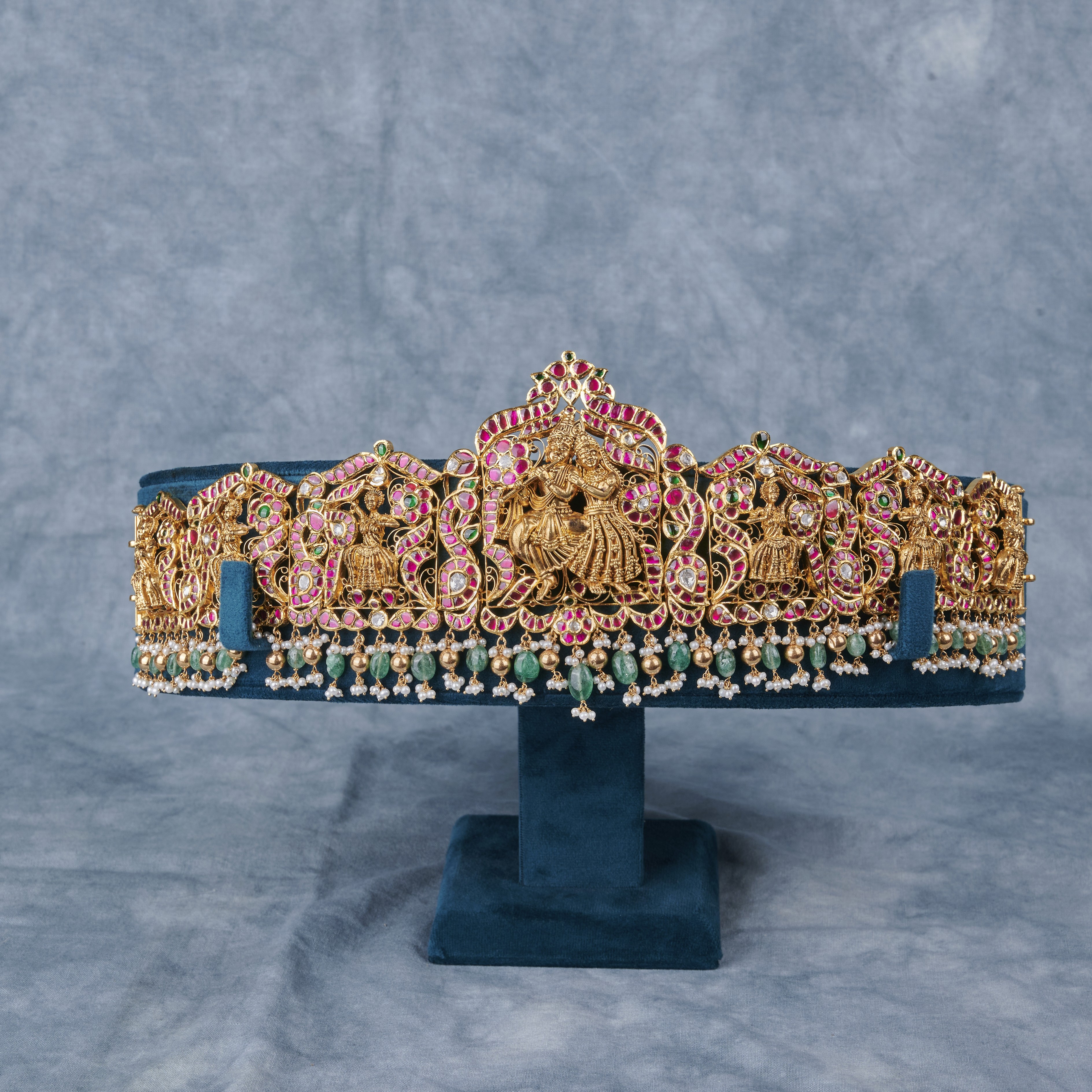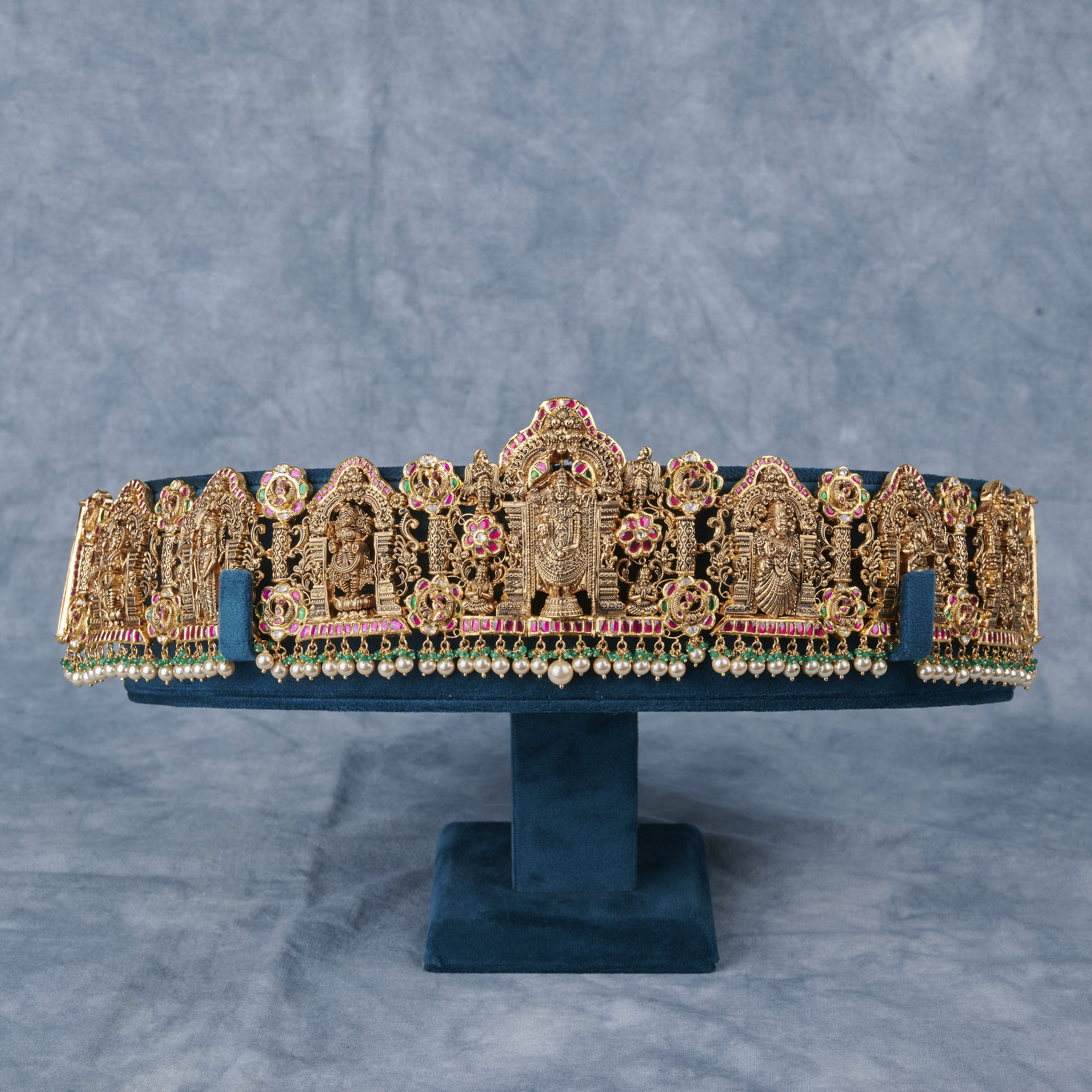 Golden Kundan Vaddanam with Pearls